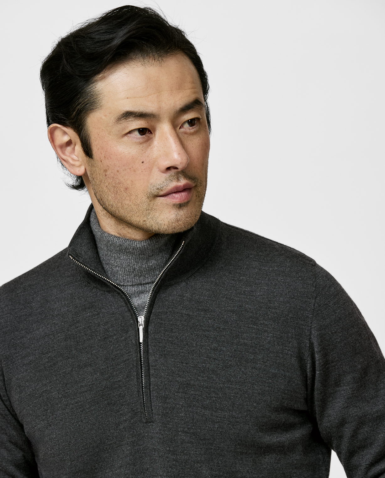 This anthracite knit rivals the breathable, lightweight softness of high-quality cashmere thanks to its S160 ultra-fine merino wool yarn made in Italy by Loro Piana. Crafted on demand by 3D knitting machines to avoid the stitched seams typical of mass production, creating a sleeker, more luxurious look. Make this knitwear your own with our many customization options to choose from. 100% merino wool Cashmere-like feel Ultra-fine fibers Breathable Lightweight