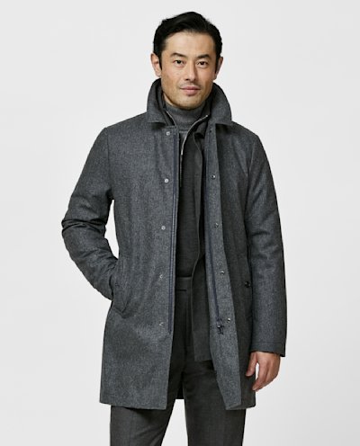 A weather-ready coat in versatile heathered gray. The soft S120 wool from VBC is paired with a technical layer to help resist wind while staying breathable. Designed here with a hood for extra protection. Make this coat your own with our many customization options to choose from. S120 wool Wind resistant Breathable