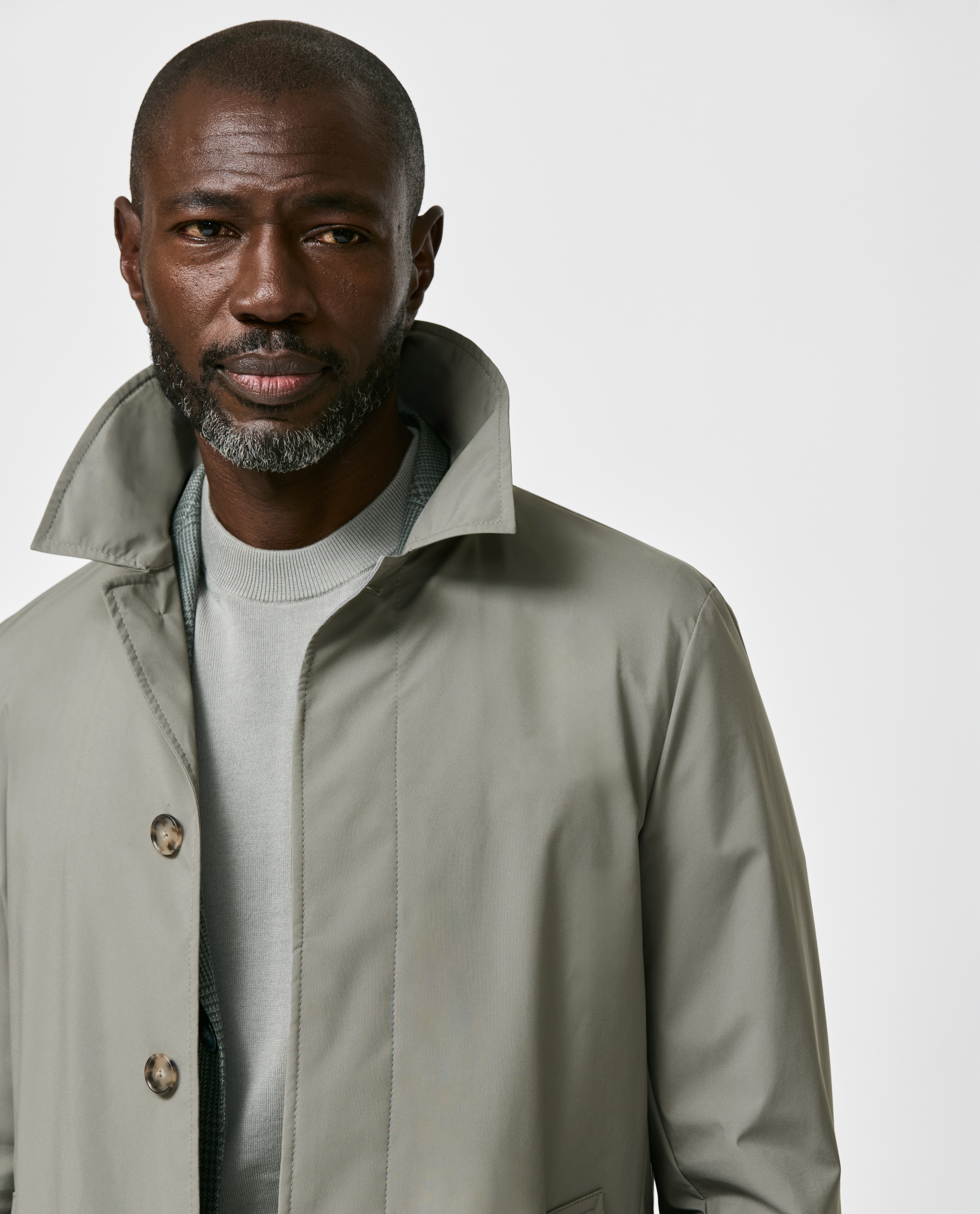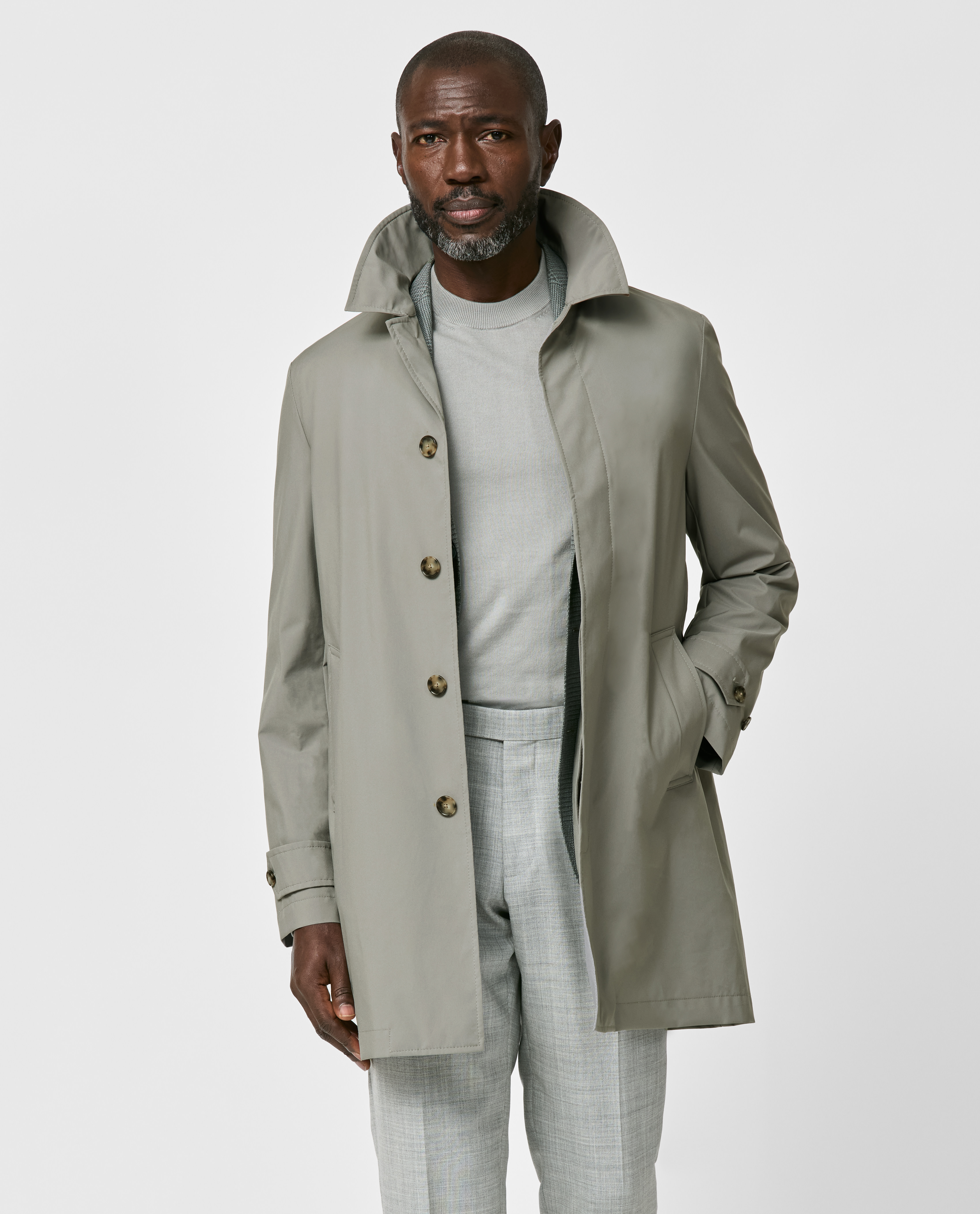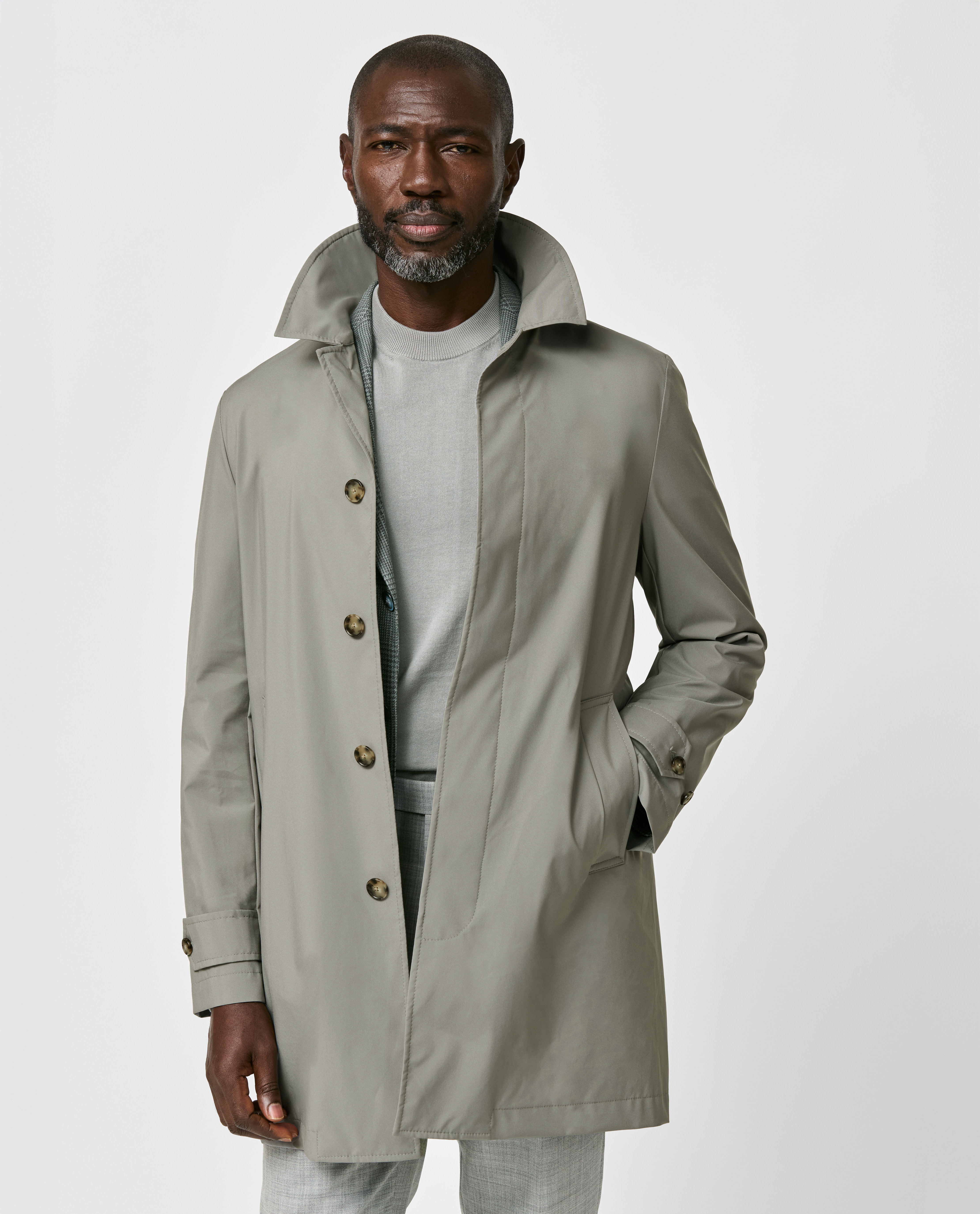 Embrace those rainy in-between seasons with this frost gray coat. Made by Olmetex, the lightweight 3-layer technical fabric is water repellent and windproof. Make this coat your own with our many customization options to choose from.