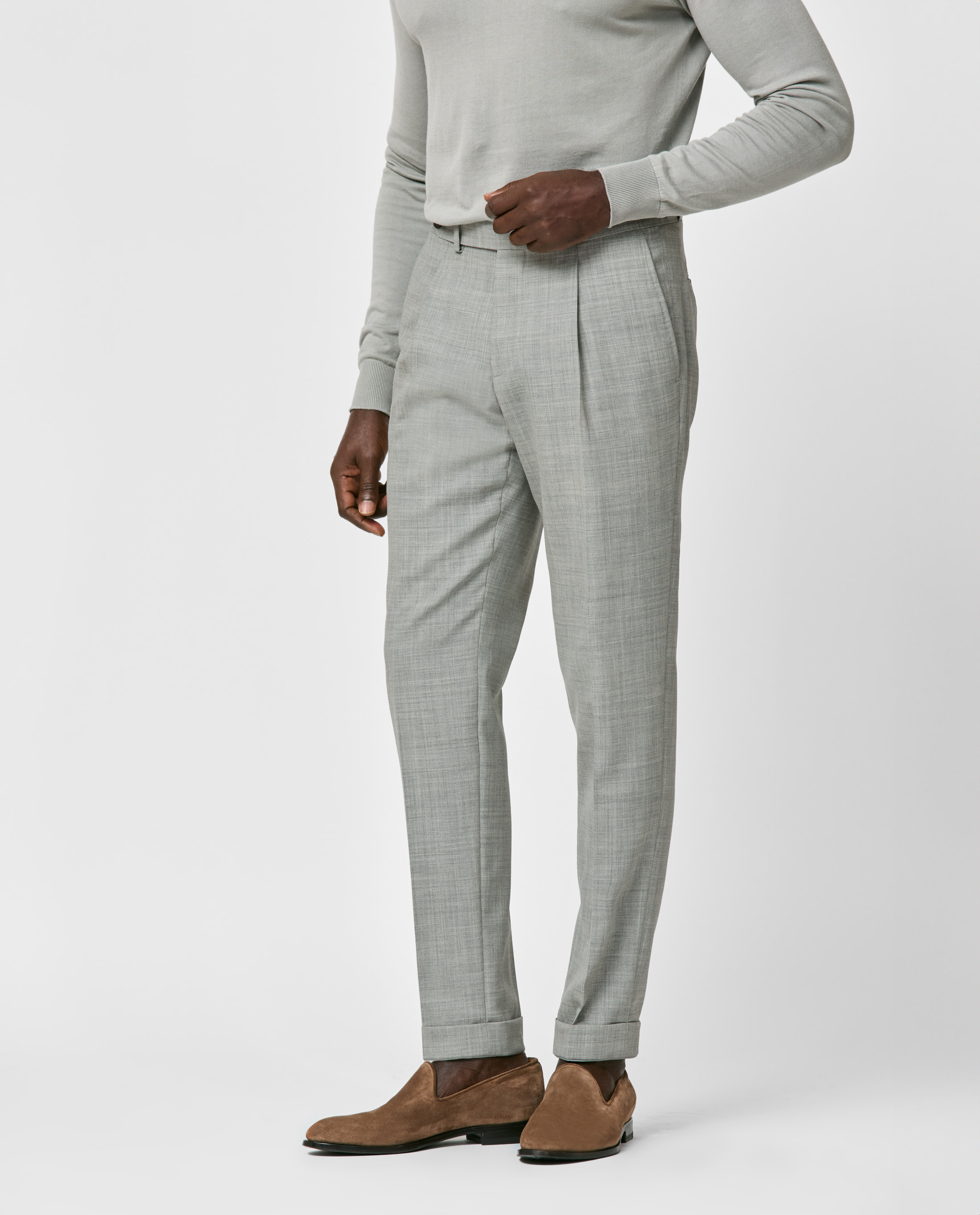 Lightweight in a soft gray, these light fresco trousers can be worn all year round. Crafted from pure wool with natural stretch, constructed in a breathable open weave for a comfortable pair of pants that won't easily wrinkle. Designed here with an extended waistband. Make these trousers your own with our many customization options to choose from. 100% wool Natural stretch Breathable Lightweight Crease resistant