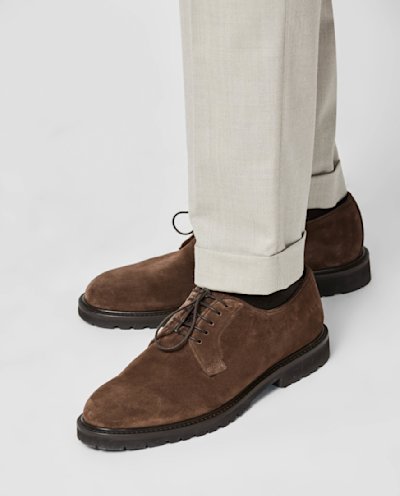 These brown Blucher shoes offer luxe softness with lightweight comfort. The suede calfskin leather is chrome tanned and features a water-resistant finish to withstand the wetter months. Designed here in our Blake Light make with a plain tip design. Make these shoes your own with our many customization options to choose from. Handmade Suede calfskin leather Chrome tanned Lightweight Water-resistant finish