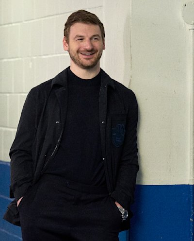To help get his head in the zone, NHL forward Zach Hyman turns to an all-midnight blue ensemble. Featuring a lightweight, water-repellent jacket with a modern zip and snap closure, his addition of a tonal crew neck knit and stretch trousers creates a look that’s as chic as it is practical. Styled with black leather Bluchers for a refined pre-game edge.