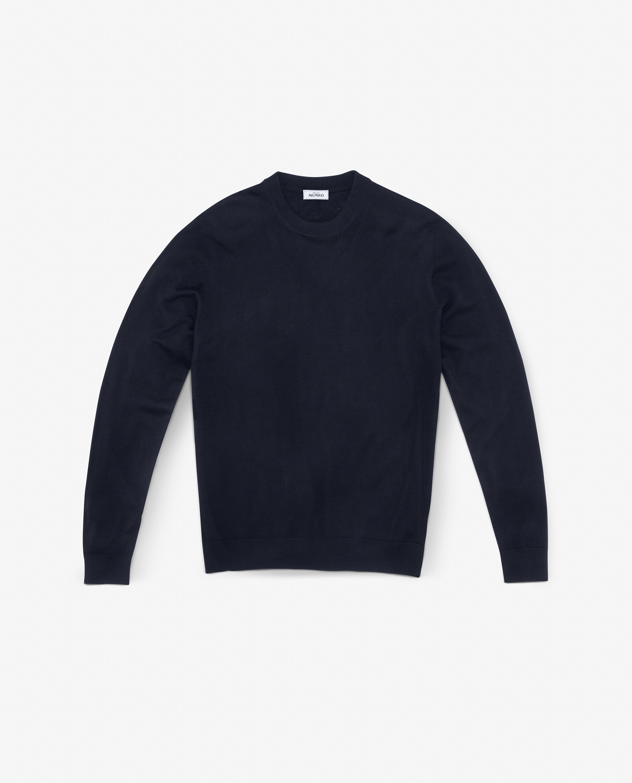 This midnight blue knit is a comfortable addition to your year-round wardrobe. The extra-fine merino wool is 3D knitted for a luxurious seamless look. Designed here as a crew neck, made from single yarns for a lighter wear. Make this knit your own with our many customization options to choose from.
