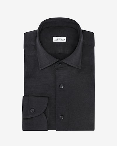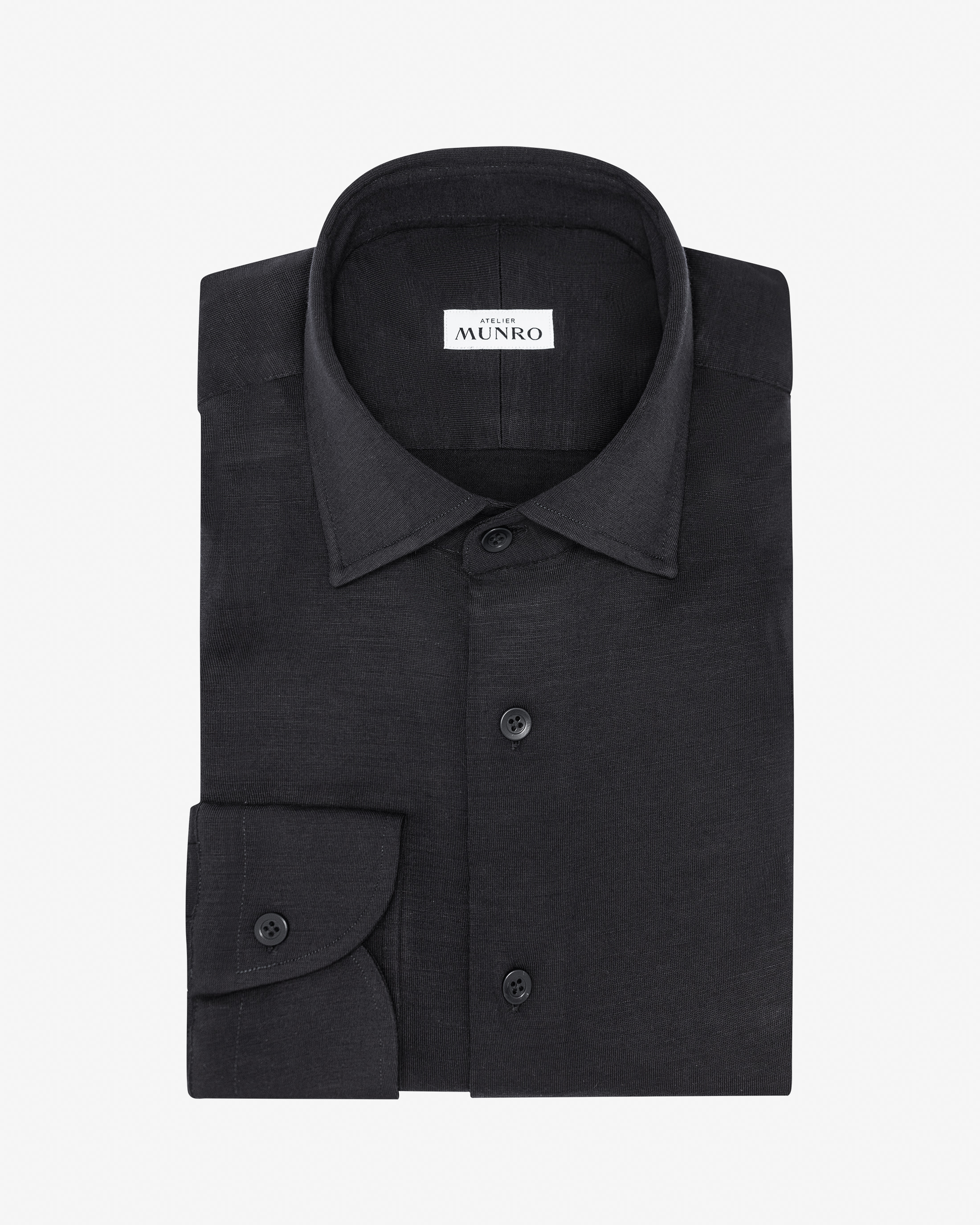 An elevated shirt for every day, in midnight blue. The lightweight S120 wool jersey is naturally breathable and crease resistant. Designed here with semi-cutaway collar and ellipse cuff for a refined touch. Make this shirt your own with our many customization options to choose from. S120 wool Natural stretch Lightweight Breathable Crease resistant