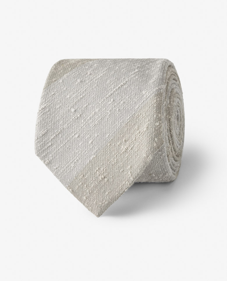 A contemporary suit to complement your seaside ceremony in more ways than one. In a beachy sand hue, the special summer blend enhanced with stretch will keep you cool and comfortable while you get hitched. Styled for warm weather with a summer-blend shirt, striped silk tie, and suede loafers.