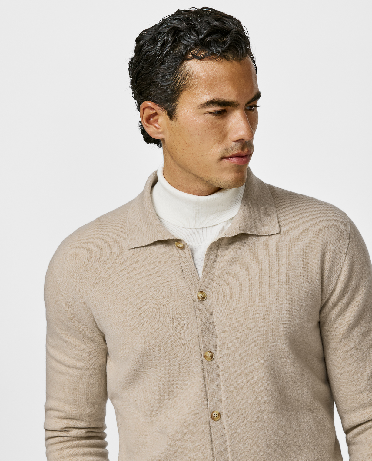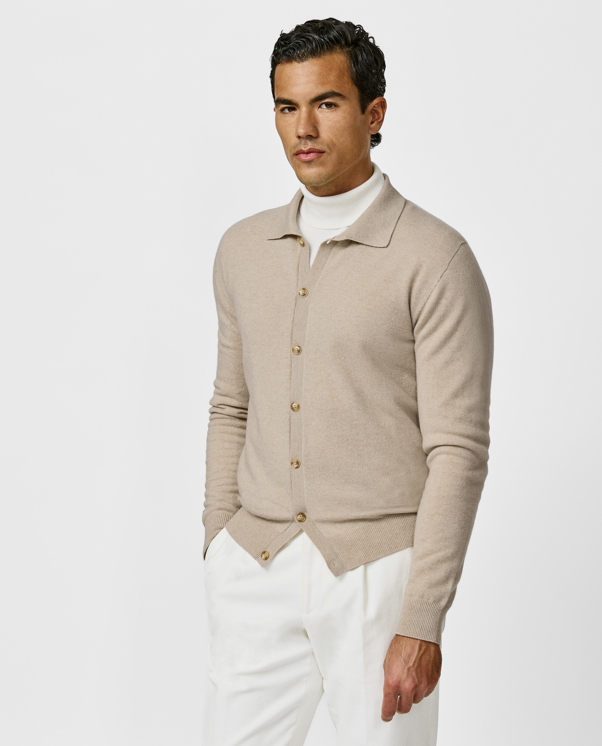 A luxurious beige knit with an elevated seamless look. Made from pure cashmere for a soft feel with superior warmth. Make this knitwear your own with our many customization options to choose from.
