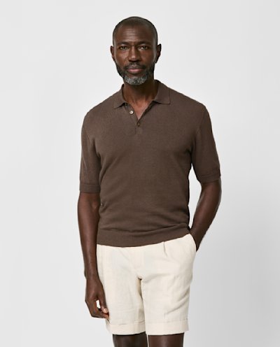 This dark taupe knit is summer friendly with a seamless finish. Crafted from a blend of breathable Turkish cotton and soft Inner Mongolian cashmere. Designed here as a polo with buttons in double ply yarn. Make this knitwear your own with our many customization options to choose from. Cotton & cashmere Breathable Soft feel