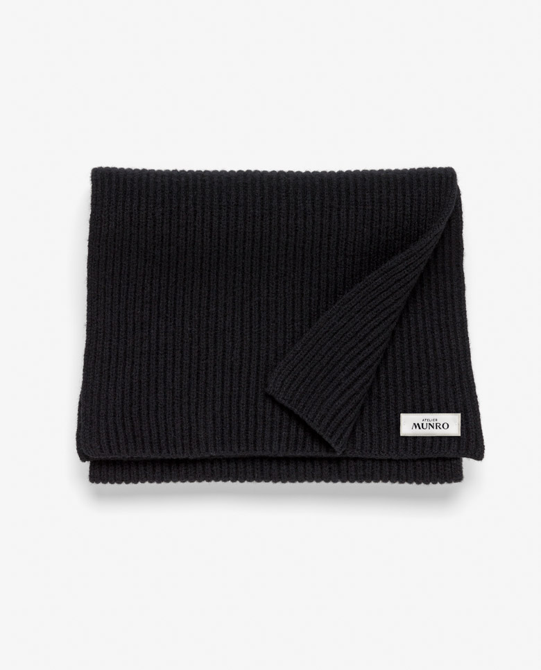 Wrap yourself up for winter with this black ribbed scarf. Made from a high-quality blend of 90% Australian wool and 10% Inner Mongolian cashmere. The mix of ultra-fine wool with soft cashmere offers warmth you can wear every day.