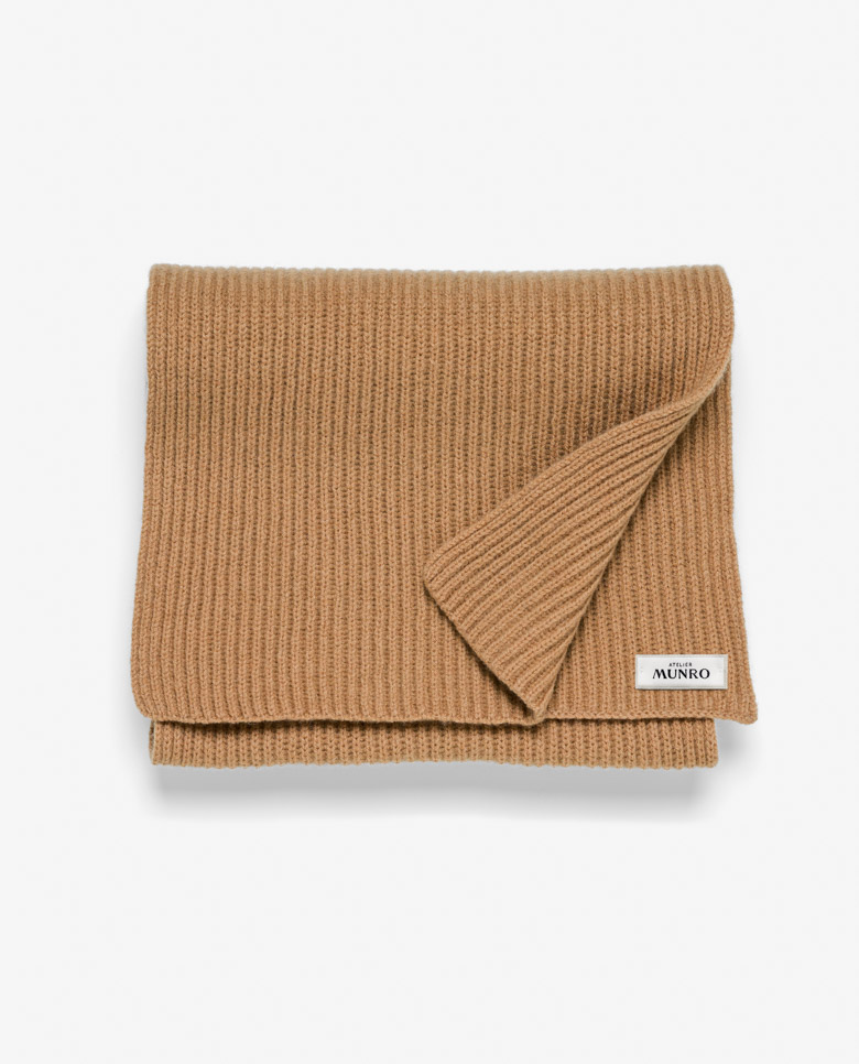 Wrap yourself up for winter with this camel ribbed scarf. Made from a high-quality blend of 90% Australian wool and 10% Inner Mongolian cashmere. The mix of ultra-fine wool with soft cashmere offers warmth you can wear every day.