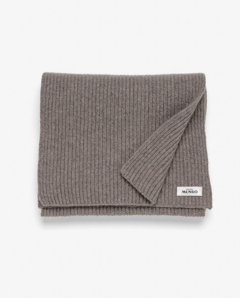 Keep the cold at bay with this luxurious dark taupe scarf in a ribbed design. Made from pure cashmere for a soft and lightweight feel with superior warmth. An accessory that will last for years to come and improve with age.