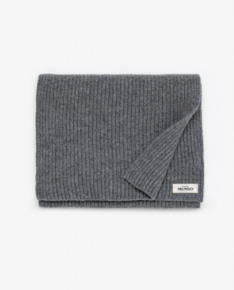 Wrap yourself up for winter with this heathered gray ribbed scarf. Made from a high-quality blend of 90% Australian wool and 10% Inner Mongolian cashmere. The mix of ultra-fine wool with soft cashmere offers warmth you can wear every day.