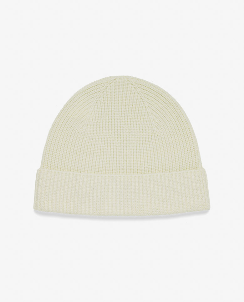 Ideal for the height of winter, this off-white ribbed beanie is cozy and comfortable. Made from a high-quality blend of 90% Australian wool with 10% Inner Mongolian cashmere. The mix of ultra-fine wool and soft cashmere offers warmth you can wear every day.