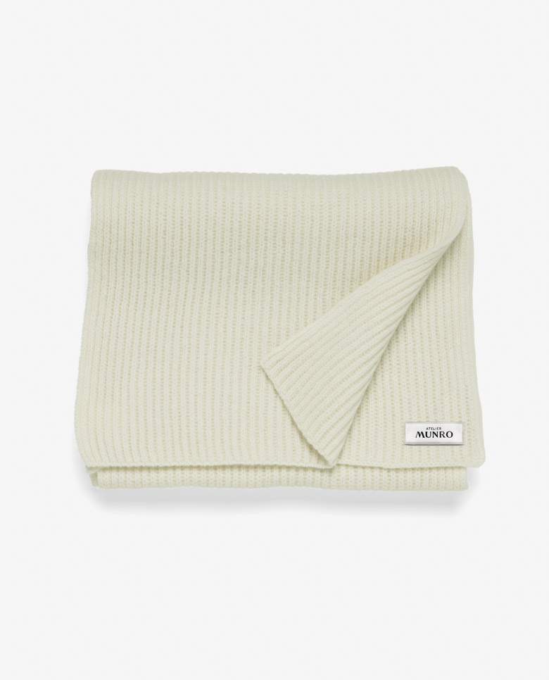 Wrap yourself up for winter with this off-white ribbed scarf. Made from a high-quality blend of 90% Australian wool and 10% Inner Mongolian cashmere. The mix of ultra-fine wool with soft cashmere offers warmth you can wear every day.