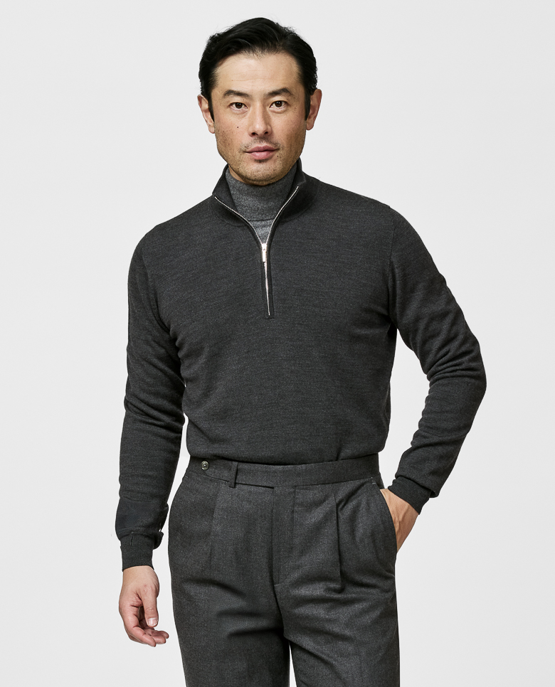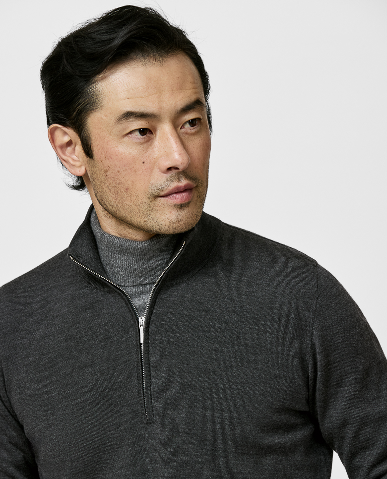 Anthracite S160 Ultra-Fine Merino Half-Zip Knit