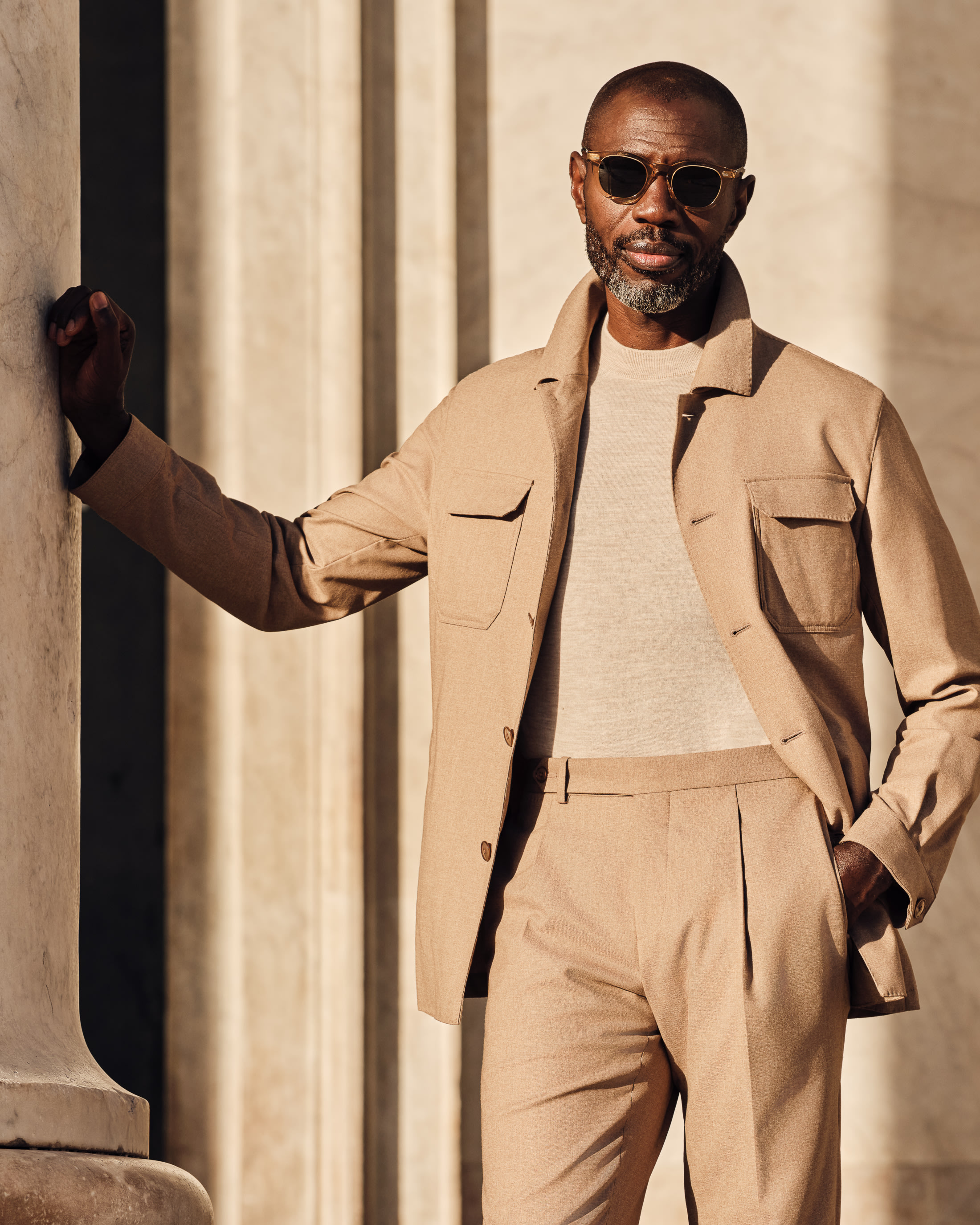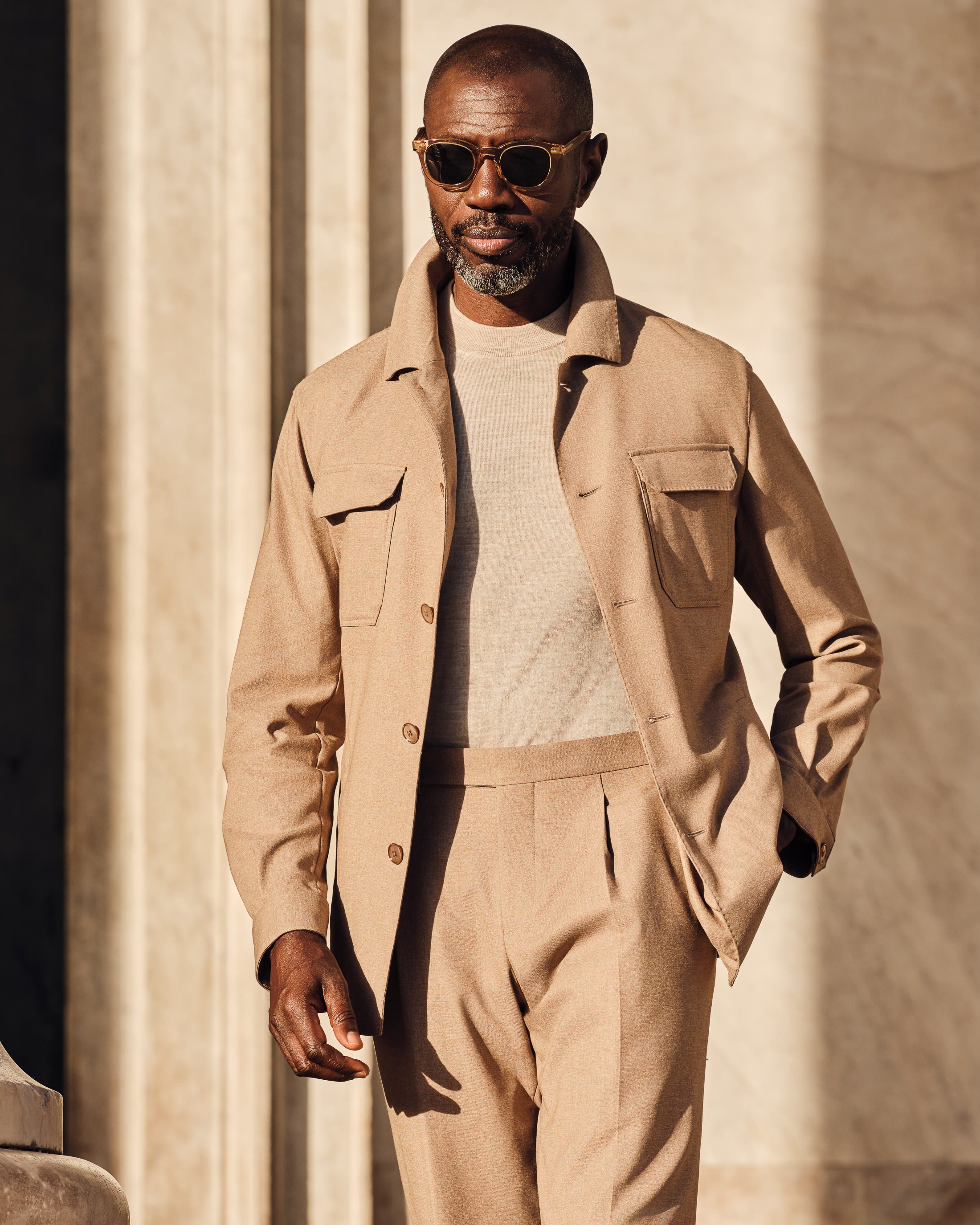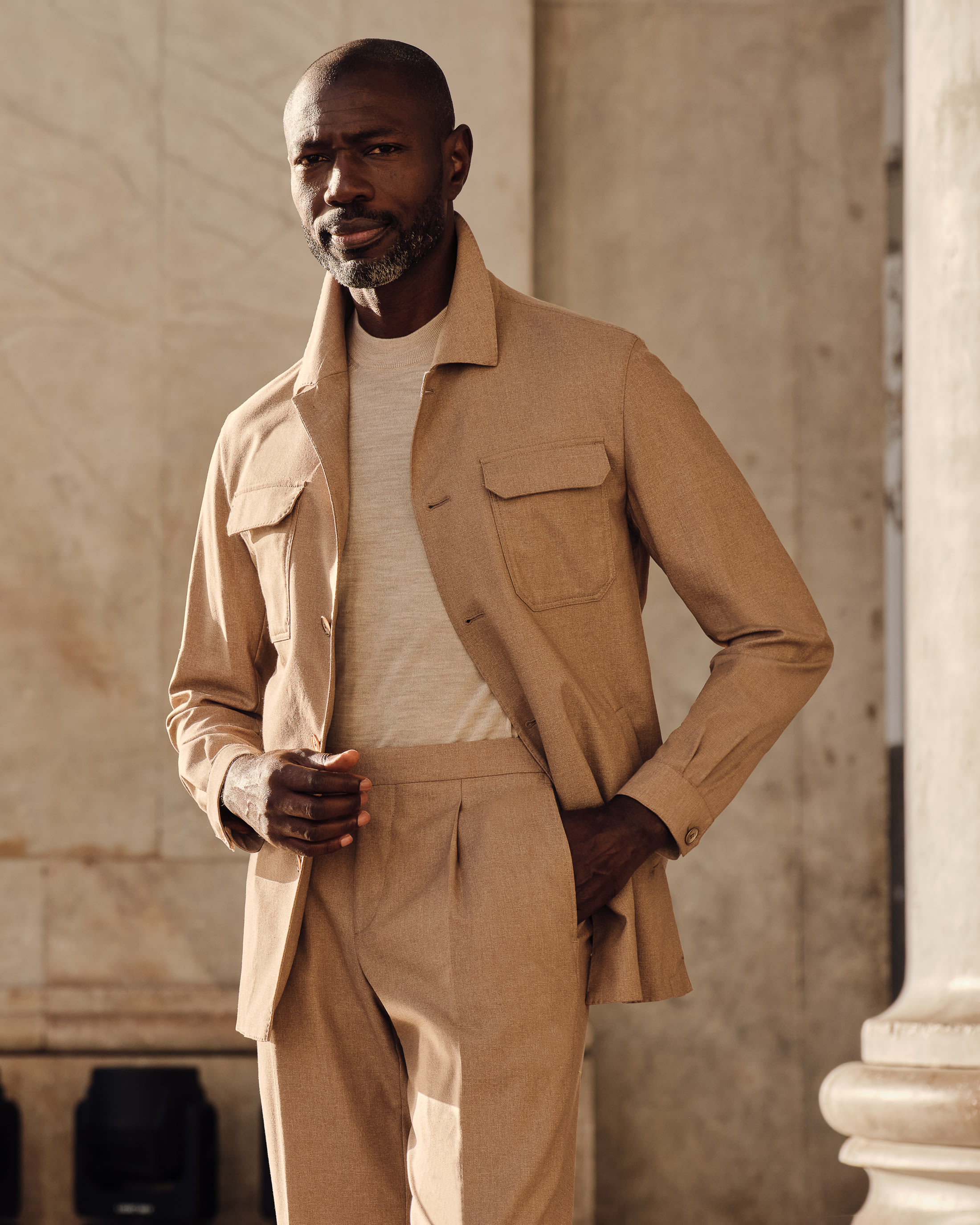 Put together meets practical summer comfort. Throw on this lightweight stretch utility suit and easily be the best dressed on any weekend away. Just add a merino knit with a simple neckline and a pair of sneakers like our new knit runners in truffle and you're good to go.
