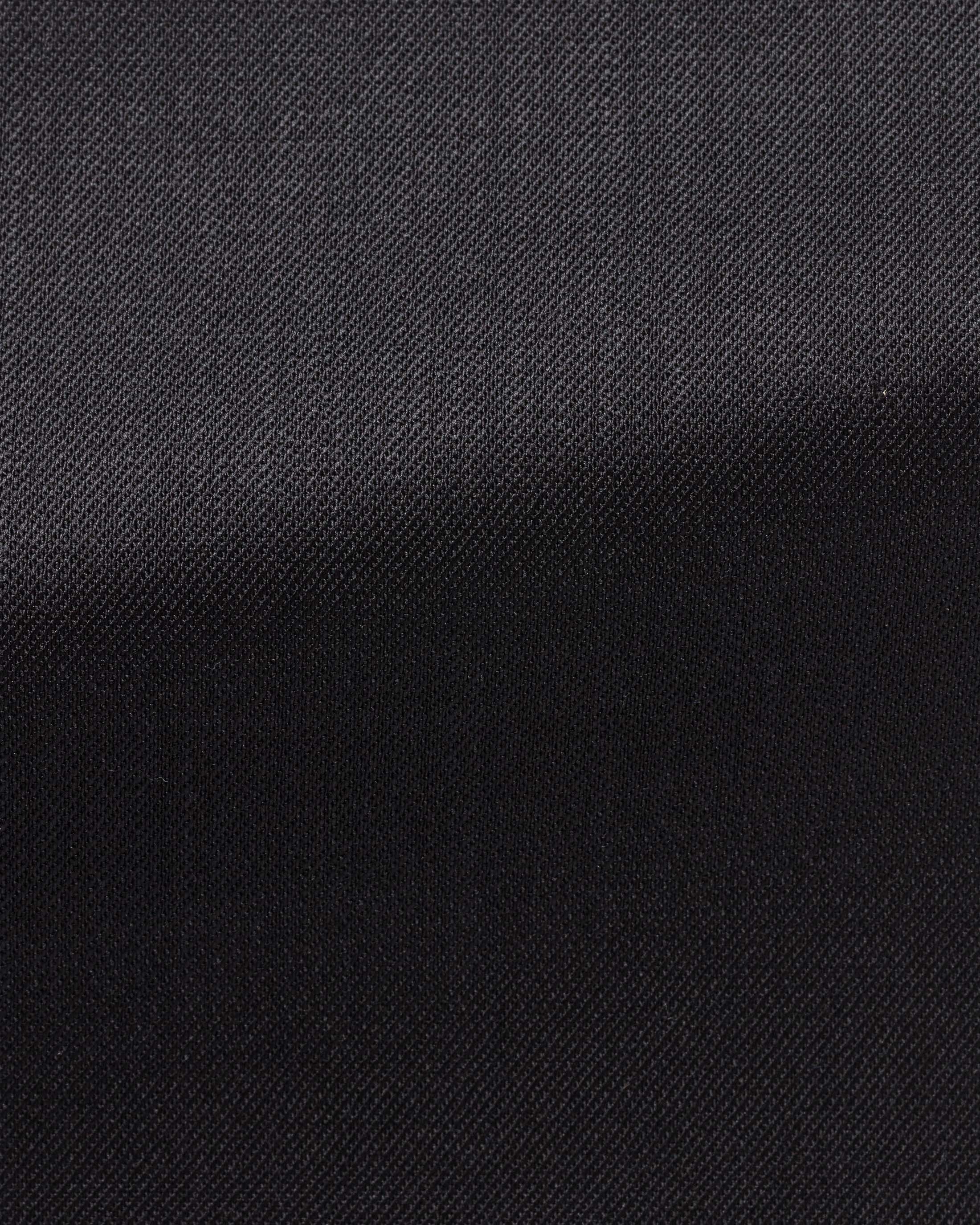 An easy choice for formal occasions, this clean-cut black tux can be worn any time of the year. Made from wool woven with a touch of stretch for additional comfort. Designed here with black satin shawl lapels and matching tuxedo stripe. Style it with a tuxedo shirt, bow tie, and patent plain toe loafers to complete the look. Make this suit your own with our many customization options to choose from.