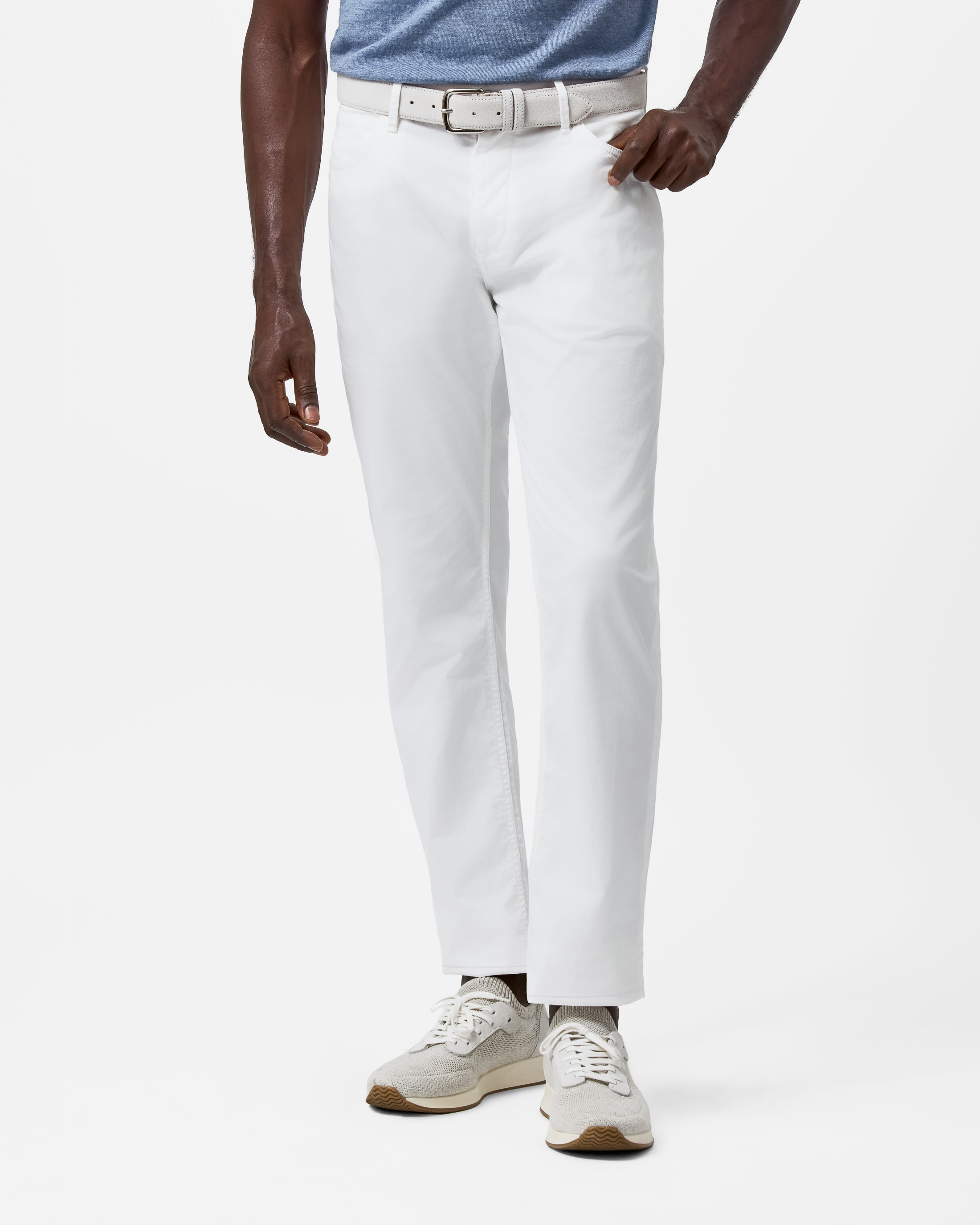 These off-white 5-pockets are a must-have for any season. Made from stretch cotton in a fine left-hand twill by Olimpias that will feel even softer with each wash. Dyed as a whole to give a washed color variation along the seams and extra color in the lining. Designed here with a comfort waistband and button fly.