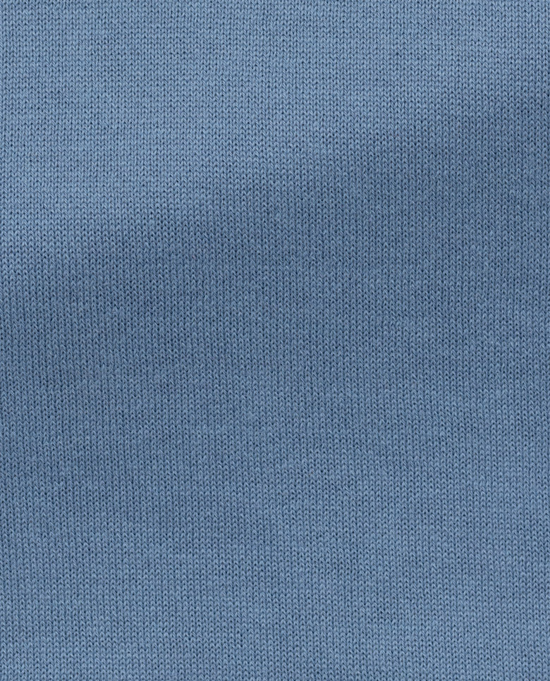 Lightweight with shine especially visible in the sunlight, consider this denim blue t-shirt your quintessential summer knit. Seamlessly knitted from a luxe blend of breathable Egyptian cotton with mulberry silk, adding even more elegance, softness, and drape. Make this knitwear your own with our customization options.
