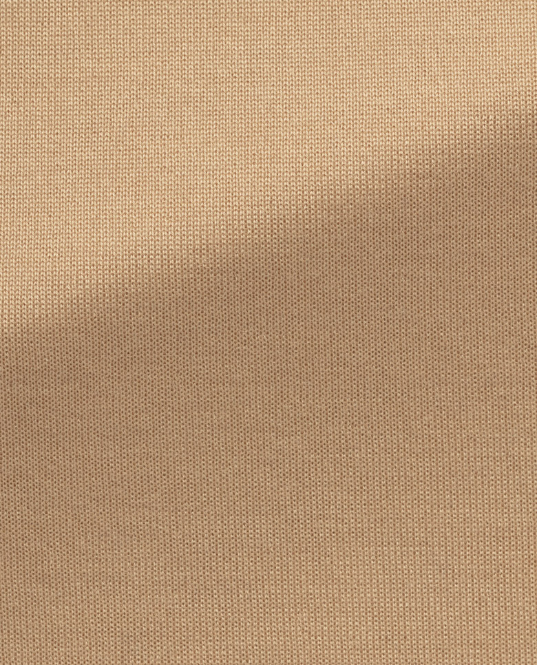 This beige knit will keep you cool in summer and warm enough in winter. The high-quality blend combines the drape and shine of silk with luxurious cashmere. Crafted on 3D-knitting machines for a sophisticated seamless look. Designed here as a polo with buttons, in double ply. Make this knitwear your own with our customization options.
