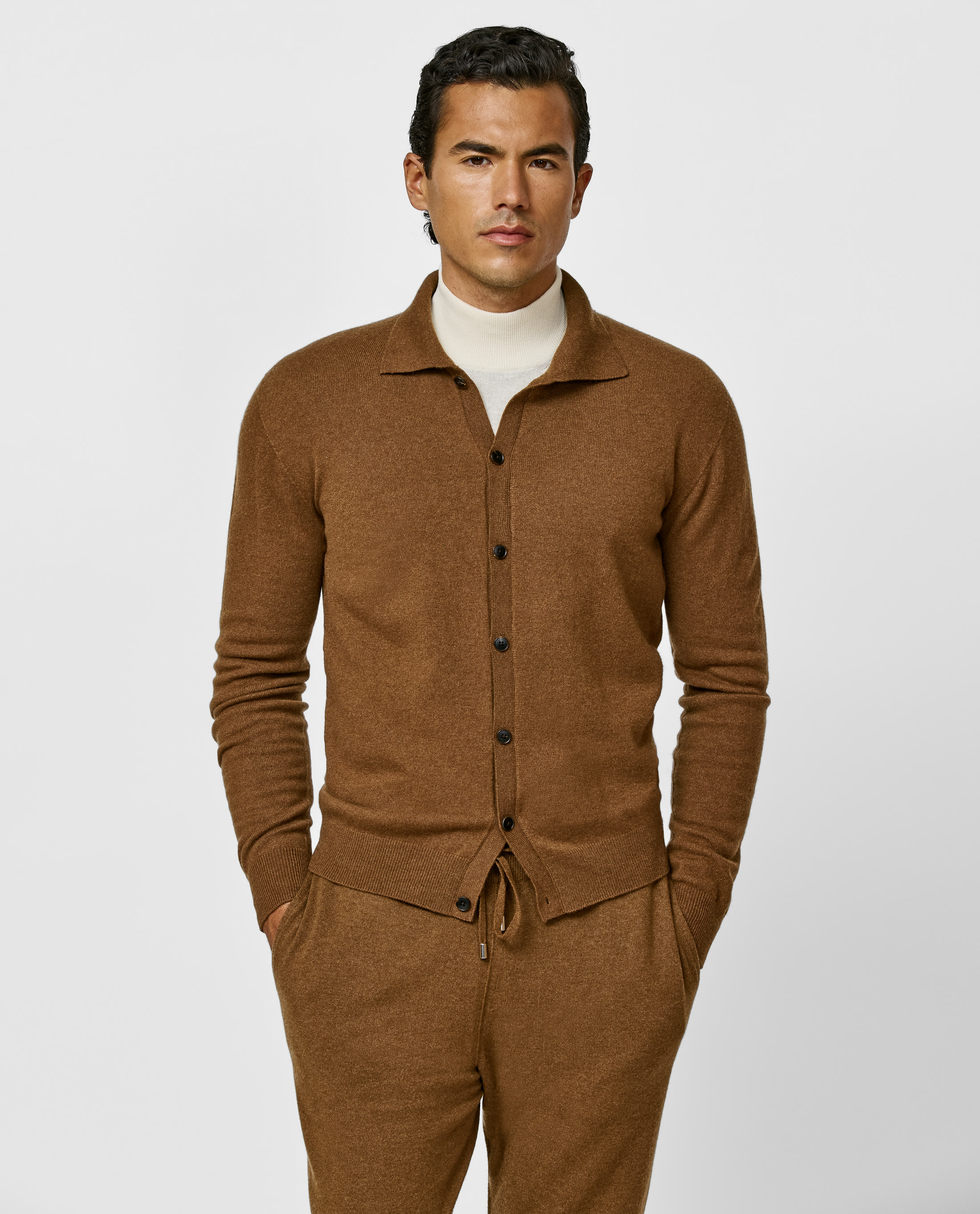 Nothing radiates casual refinement like this cinnamon cardigan with polo collar knit. Made from soft cashmere with superior insulation, 3D-knitted for a luxurious seamless look. Make this knitwear your own with our customization options.