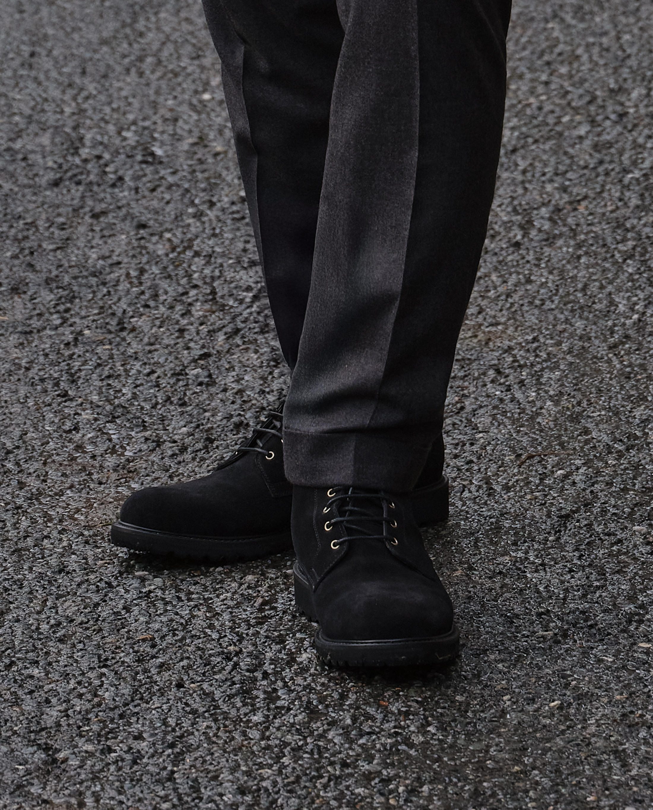 These black parajumper boots offer light and luxurious wear. The soft suede calfskin leather is chrome tanned and features a water-resistant finish to withstand the wetter months of the year. Designed here with a vibram vi-lite sole. Make these boots your own with our many customization options to choose from. Handmade Suede calfskin leather Chrome tanned Lightweight Water-resistant finish