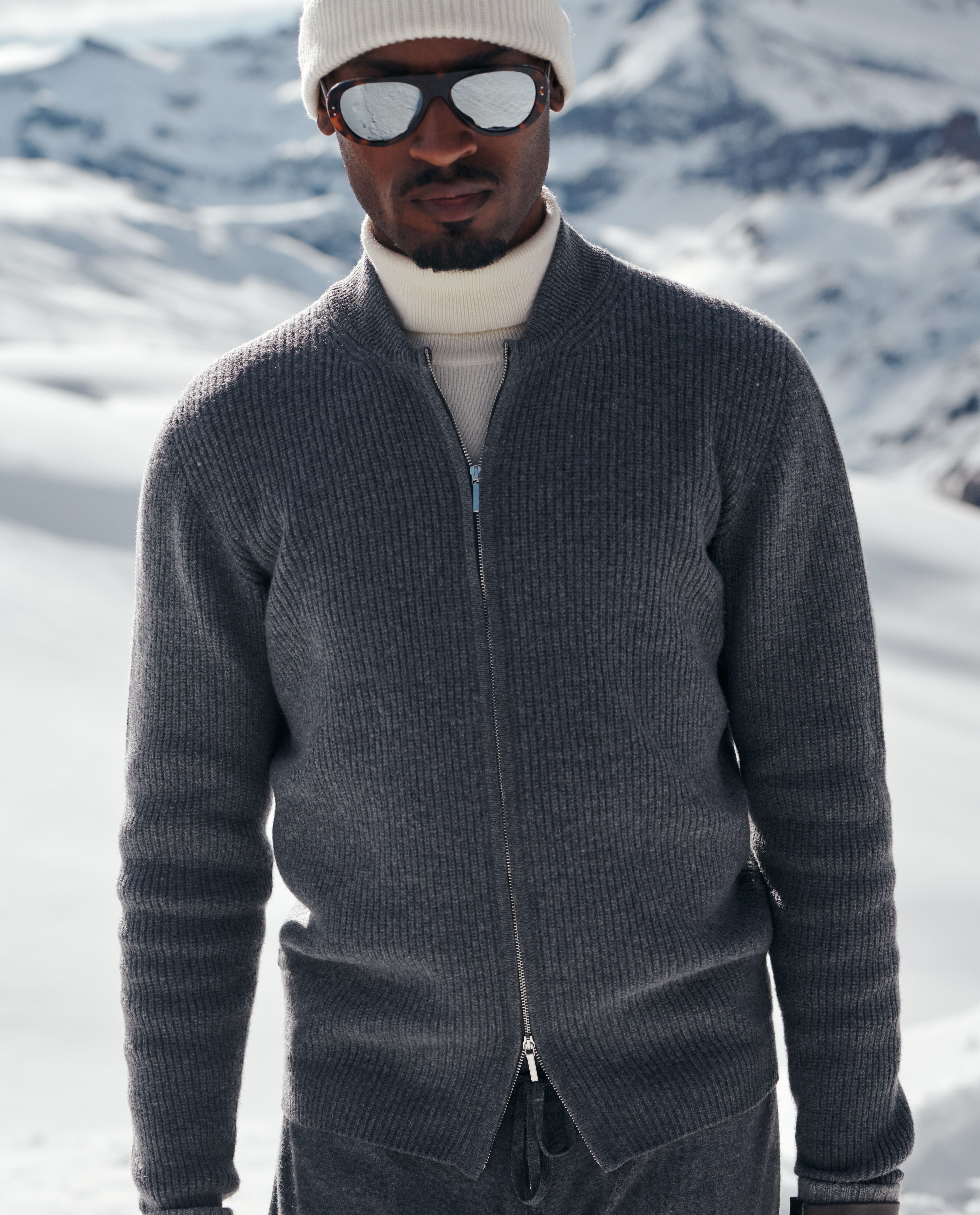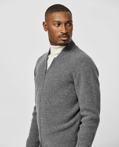 Add dimension to your everyday layering with this heathered gray ribbed knit. Made from a mix of ultra-fine Australian wool and soft Inner Mongolian cashmere, 3D-knitted for a seamless look. Designed here as a full-zip with a baseball collar, in a half-English rib for added warmth and texture. Make this knitwear your own with our many customization options to choose from. Wool & cashmere Warm Soft feel