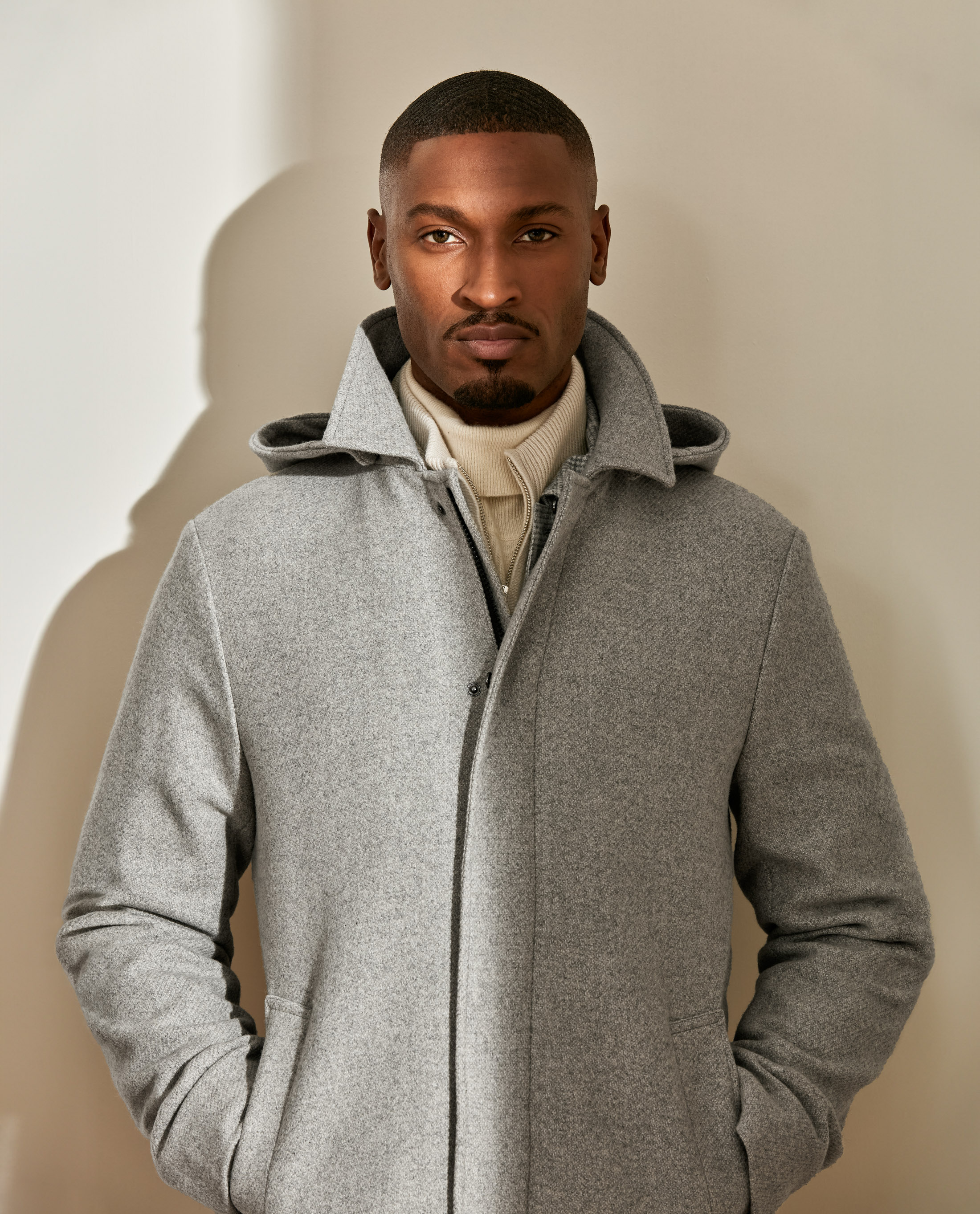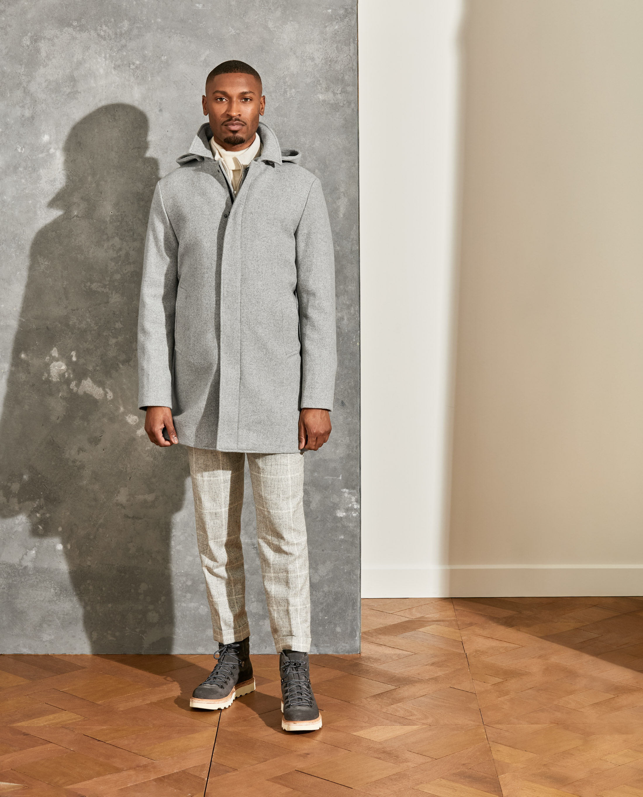 Turn winter from a burden into a pleasure with this voluminous light gray coat. Made from a warm wool-cashmere blend with mélange yarns. The heavy twill is extra soft with extraordinary drape. Designed here with a hood for extra protection. Make this coat your own with our many customization options to choose from. Wool & cashmere Mélange Heavy twill Soft touch