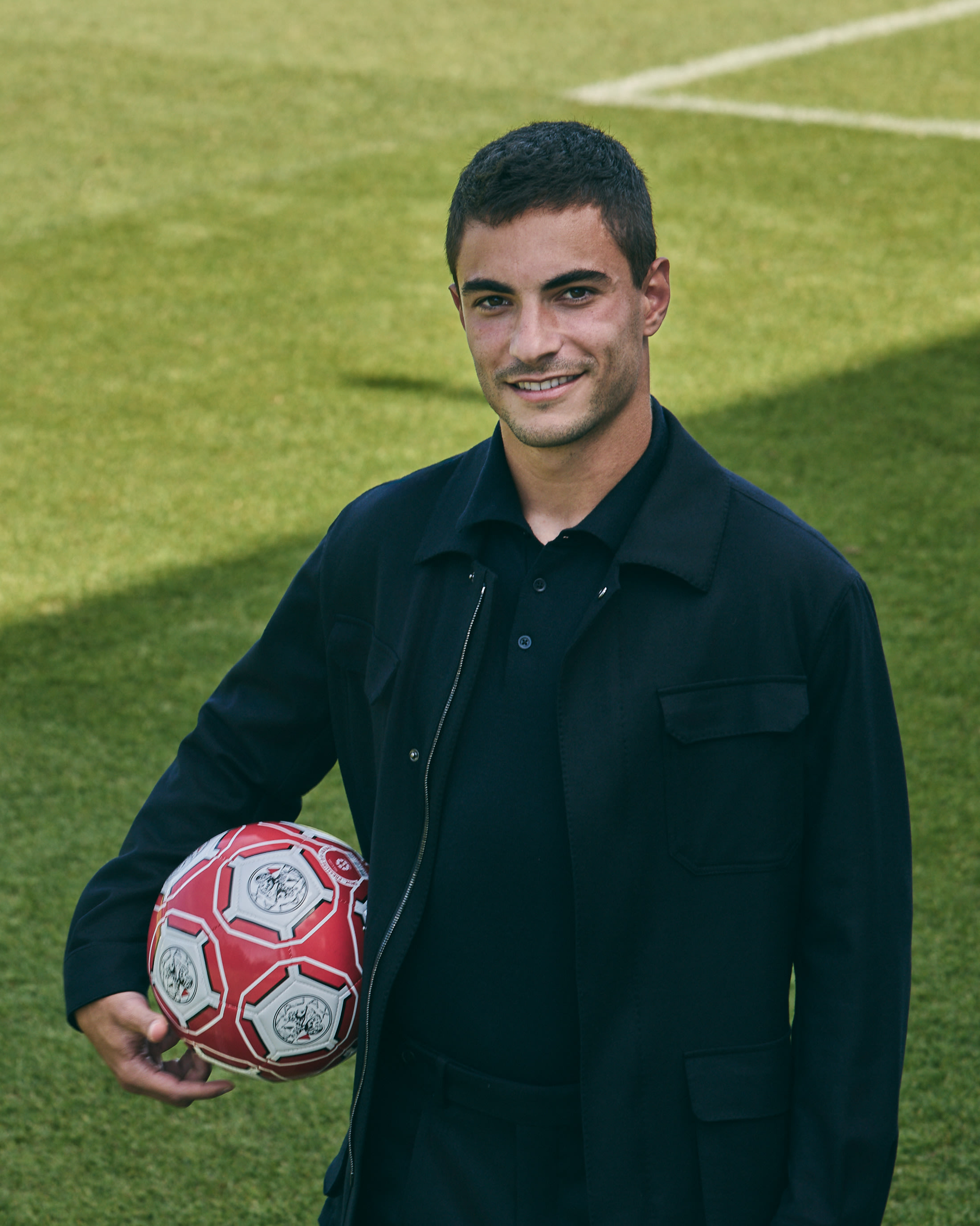 This midnight blue lightweight suit unites performance, comfort, and elegance. Crafted from Jersely® fabric made in Italy by Loro Piana. The flannel creates the elasticity of knitted jersey by combining the finest pure wool and a small percentage of stretch for a soft, breathable, and naturally odor resistant garment that moves with the body. Style it with a cotton-silk polo knit and midnight blue suede runners.