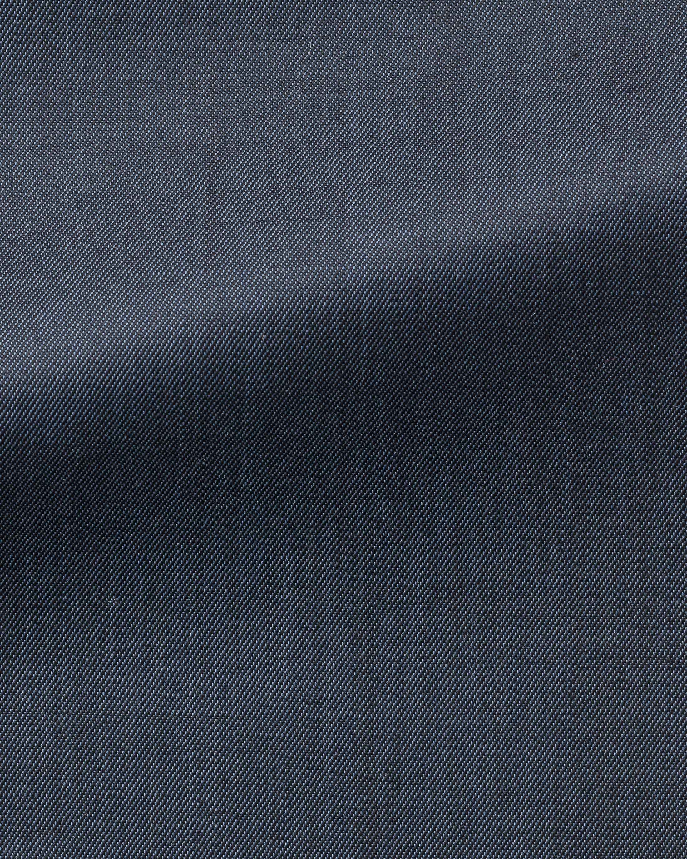 A slate blue twill weave featuring a four-season weight, a subtle two-tone effect, a light sheen and a smooth, cool and crisp feel. Made with: wool and mohair.