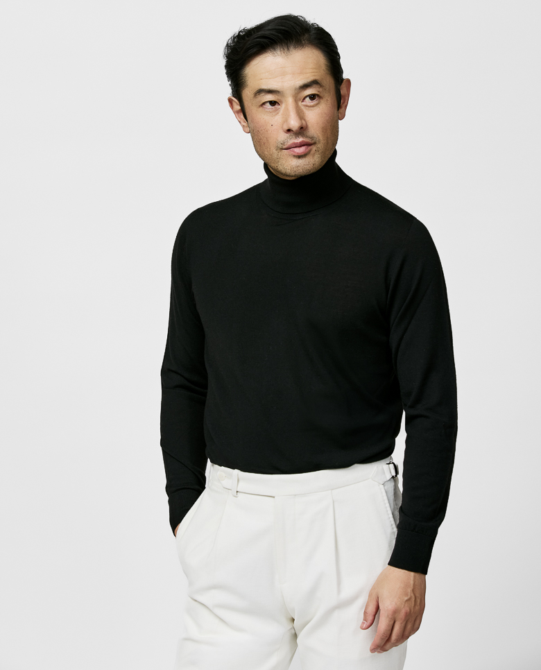 This black knit offers a luxurious layer with an element of lightness. The high-quality blend combines the drape and shine of silk with the softness of cashmere. Crafted on 3D-knitting machines for a sophisticated seamless look. Make this knitwear your own with our customization options. Cashmere & silk Superior drape Shine Soft feel