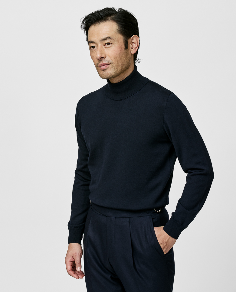 This midnight blue knit rivals the breathable, lightweight softness of high-quality cashmere thanks to its S160 ultra-fine merino wool yarn made in Italy by Loro Piana. Crafted on demand by 3D knitting machines to avoid the stitched seams typical of mass production, creating a sleeker, more luxurious look. Make this knitwear your own with our customization options. 100% merino wool Cashmere-like feel Ultra-fine fibers Breathable Lightweight