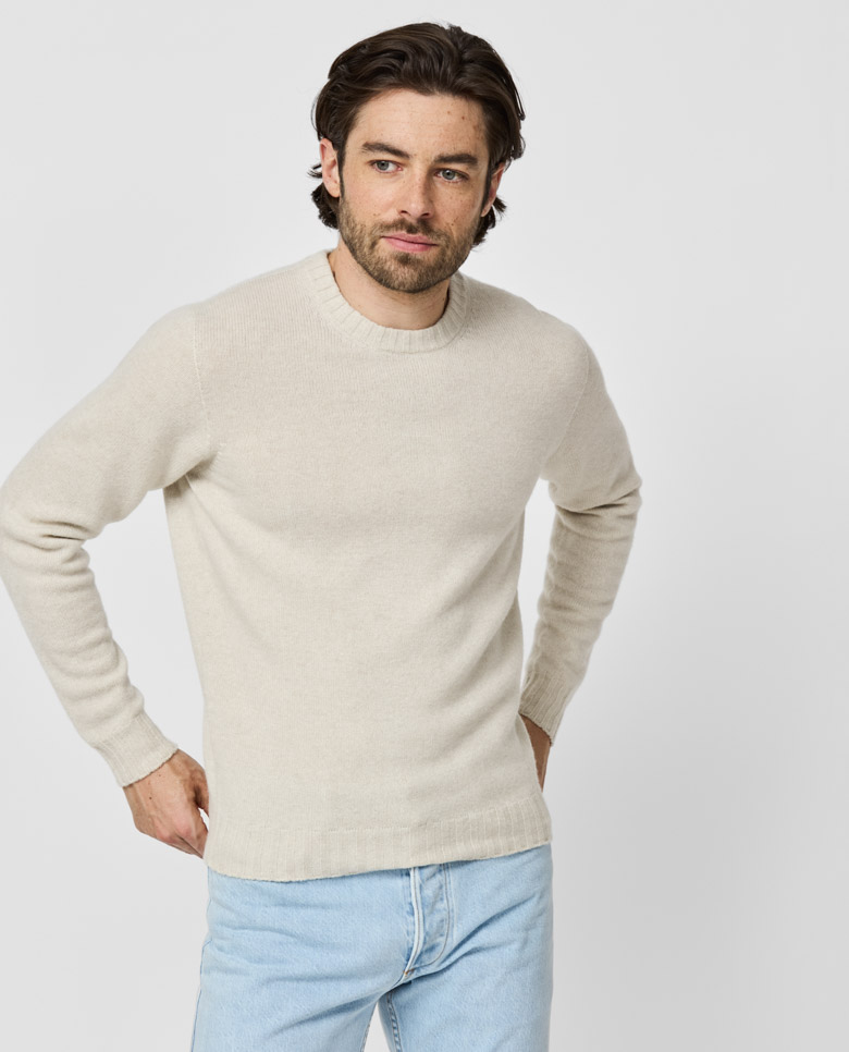 This cream knit is a warm layer you can wear every day. Made from a mix of ultra-fine Australian wool and soft Inner Mongolian cashmere, 3D-knitted for a luxurious seamless look. Designed here as a crew neck with wide ribbed detailing, in double ply for maximum warmth. Make this knitwear your own with our many customization options to choose from. Wool & cashmere Warm Soft feel