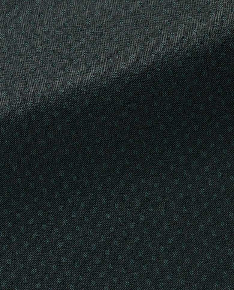 For special occasions that call for striking winter flair, try this dark moss tuxedo featuring jacquard polka dots. Made from S110 merino wool with natural stretch offering ease of movement. Designed here with peak lapels and gauntlet cuffs with kissing buttons. Style it with a tuxedo shirt, bow tie, and plain toe loafers to complete the look. Make this suit your own with our many customization options to choose from.