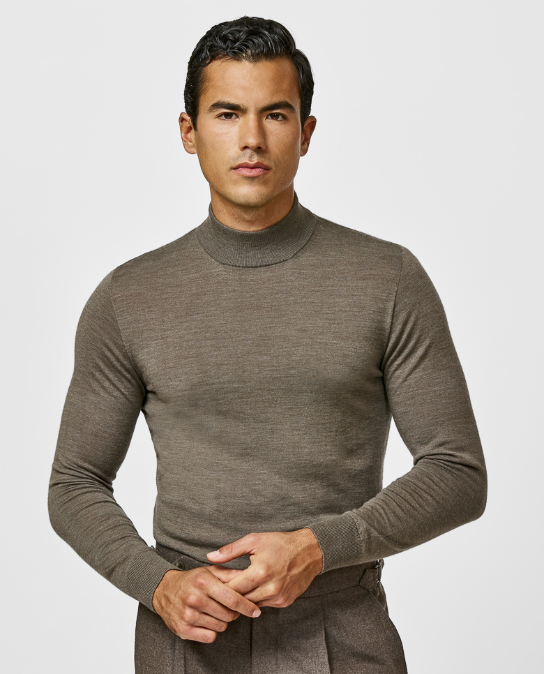 This dark taupe knit rivals the breathable, lightweight softness of high-quality cashmere thanks to its S160 ultra-fine merino wool yarn made in Italy by Loro Piana. Crafted on demand by 3D knitting machines to avoid the stitched seams typical of mass production, creating a sleeker, more luxurious look. Make this knitwear your own with our customization options. 100% merino wool Cashmere-like feel Ultra-fine fibers Breathable Lightweight