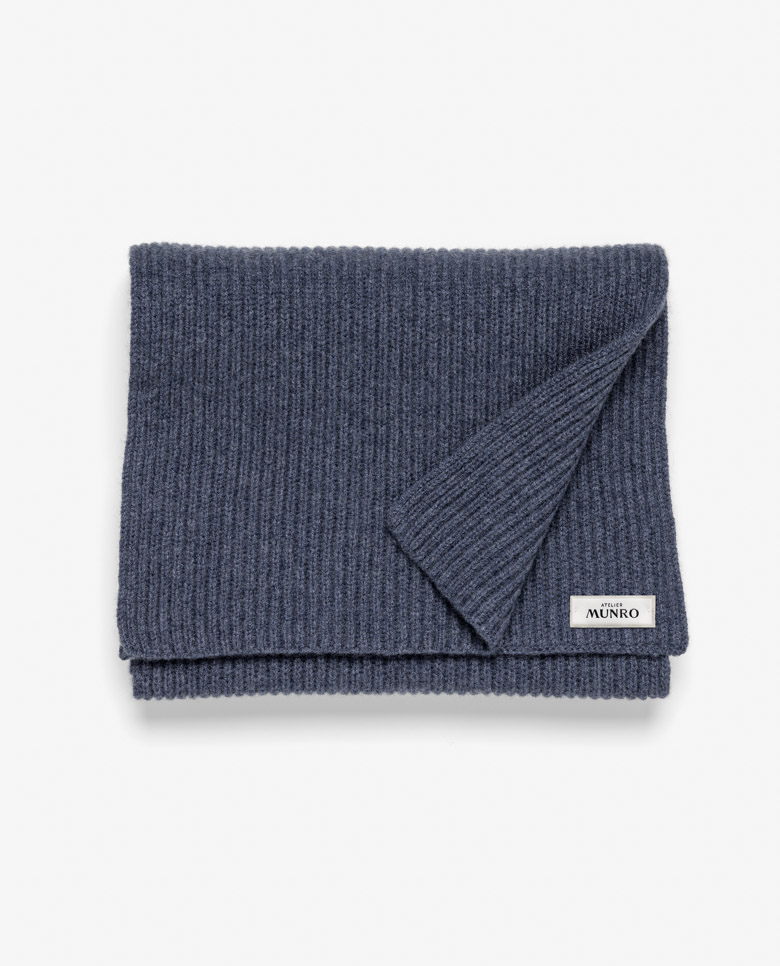 Keep the cold at bay with this luxurious denim blue scarf in a ribbed design. Made from pure cashmere for a soft and lightweight feel with superior warmth. An accessory that will last for years to come and improve with age.