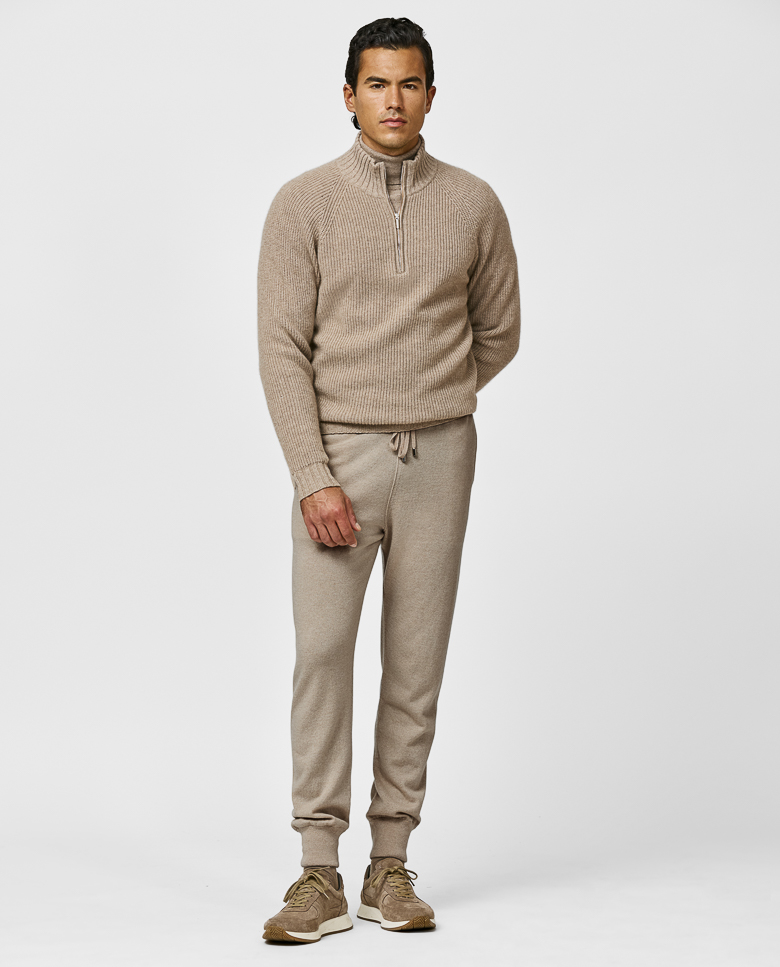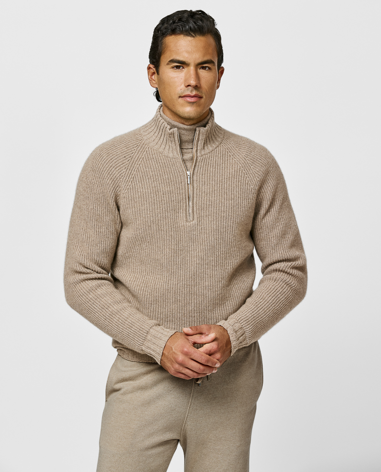 A luxurious desert beige knit with an elevated seamless look. Made from pure cashmere for a soft feel with superior warmth. Make this knitwear your own with our many customization options to choose from.