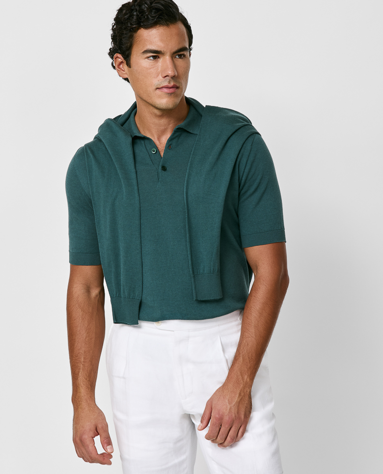 Lightweight with shine especially visible in the sunlight, consider this forest green cardigan your quintessential summer knit. Seamlessly knitted from a luxe blend of breathable Egyptian cotton with mulberry silk, adding even more elegance, softness, and drape. Designed here with a full-zip closure, in single ply for the lightest wear possible. Make this knitwear your own with our customization options.
