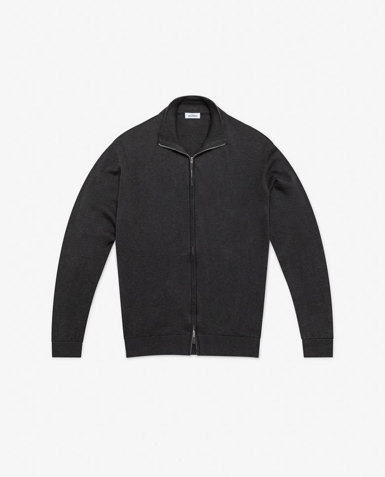 This anthracite gray knit is summer friendly with a seamless finish. Crafted from a blend of breathable Turkish cotton and soft Inner Mongolian cashmere. Designed here with a full-length zip, in single yarn for a lightweight look. Make this knitwear your own with our many customization options to choose from.