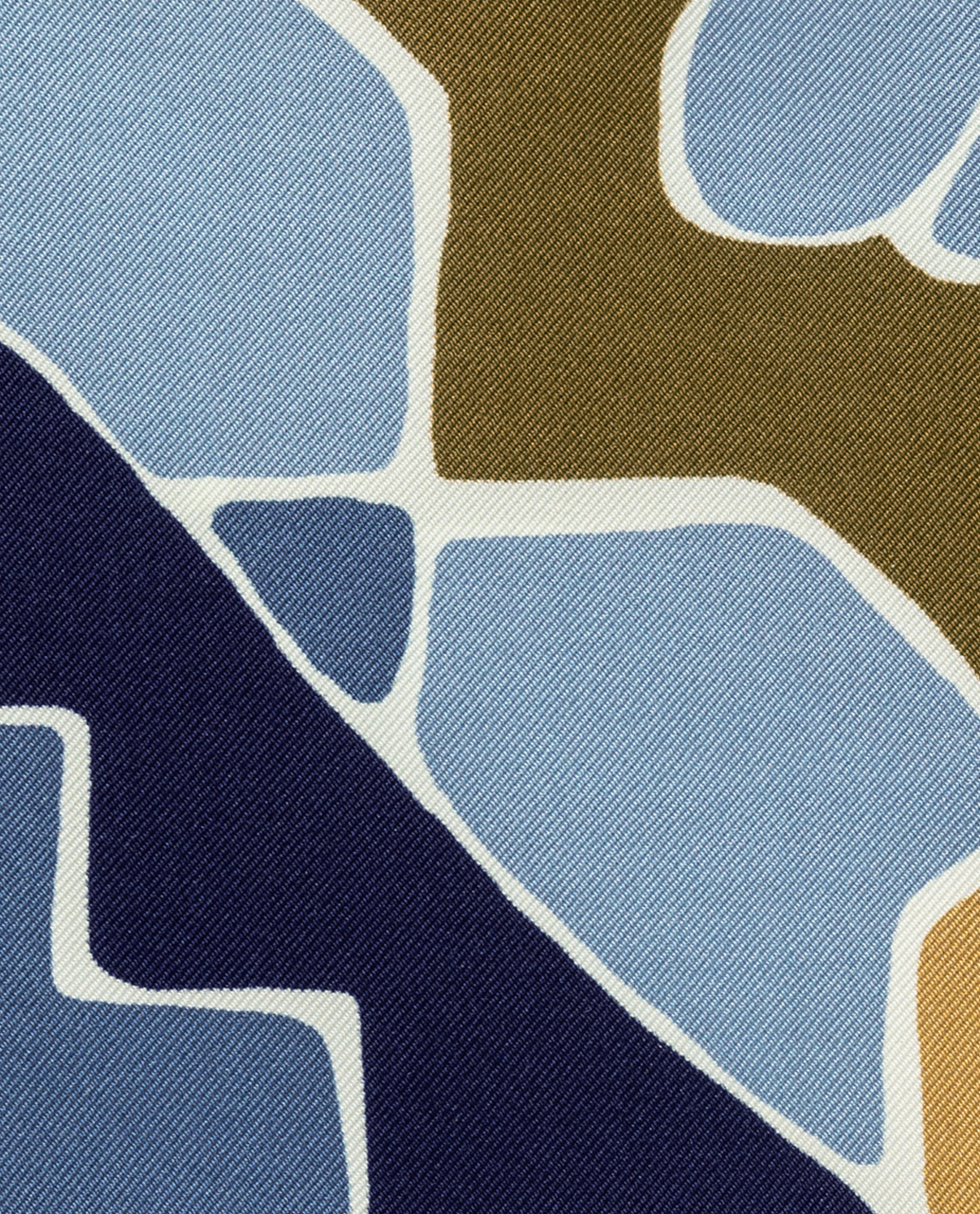Add a touch of sophistication to your ensemble with this light blue pocket square featuring a blue and brown kilim design. Printed on elegant pure silk in Como, Italy and finished with hand-rolled dark blue edges. 100% silk 33 x 33 cm Hand-rolled edges