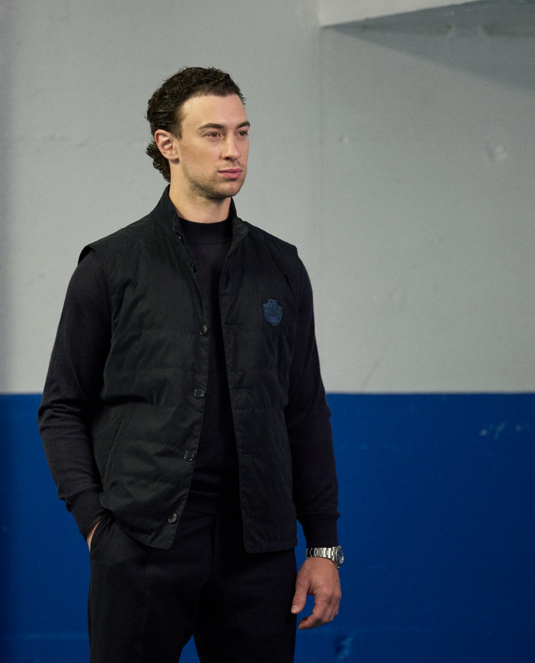 For a laid-back look with an athleisure twist, throw on this lightweight midnight blue quilted vest. Made from a soft, peach-skin technical fabric with a velvety texture and water-repellent finish. Pair it for the weekends with your favorite polo, chinos, and suede sneakers. Like this fabric, but prefer a different style? Every piece is crafted exclusively for you, with your choice of design options and tailored to your exact measurements. Water repellent Technical fabric Peached