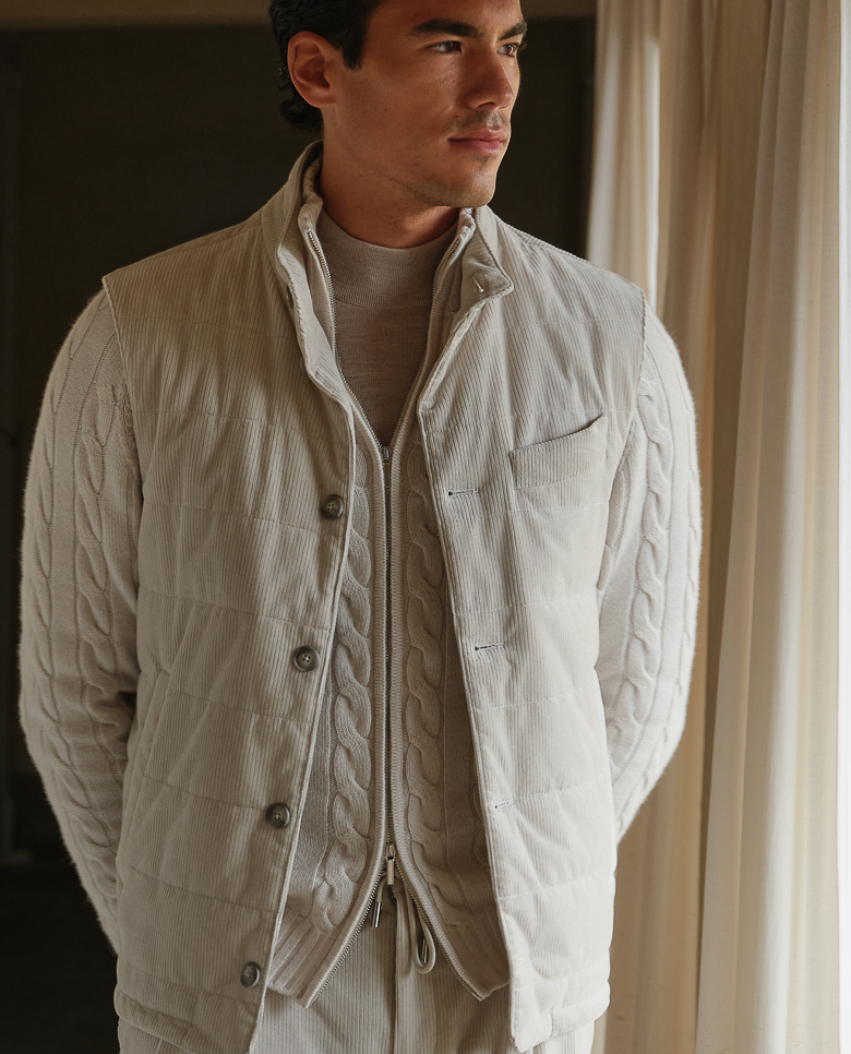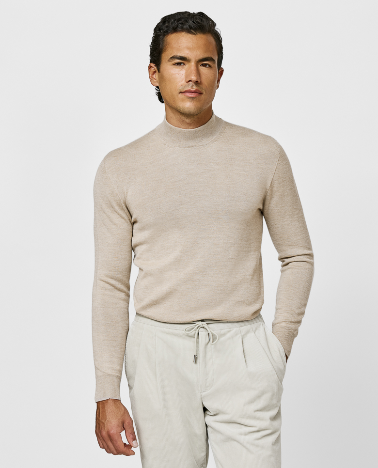 This sand knit will keep you cool in summer and warm enough in winter. The high-quality blend combines the drape and shine of silk with luxurious cashmere. Crafted on 3D-knitting machines for a sophisticated seamless look. Make this knitwear your own with our many customization options to choose from. Cashmere & silk Superior drape Shine Soft feel