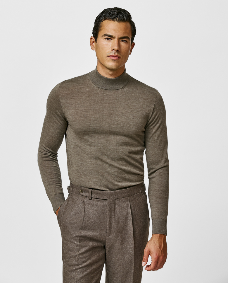 This dark taupe knit rivals the breathable, lightweight softness of high-quality cashmere thanks to its S160 ultra-fine merino wool yarn made in Italy by Loro Piana. Crafted on demand by 3D knitting machines to avoid the stitched seams typical of mass production, creating a sleeker, more luxurious look. Make this knitwear your own with our customization options. 100% merino wool Cashmere-like feel Ultra-fine fibers Breathable Lightweight